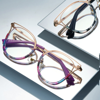 Tr90 עין החתול קטן מסגרת נמר אנטי כחול אור זכוכית מסגרות מתכת בית מקדש נשים 2232